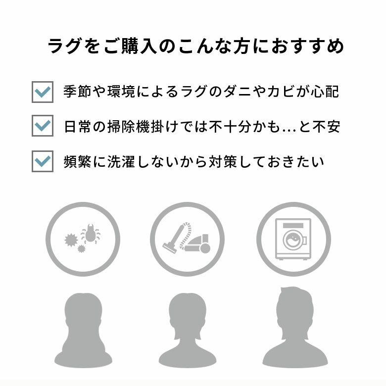 敷くだけで見えない不安を軽減し、ラグをより清潔に長くご使用いただけます。