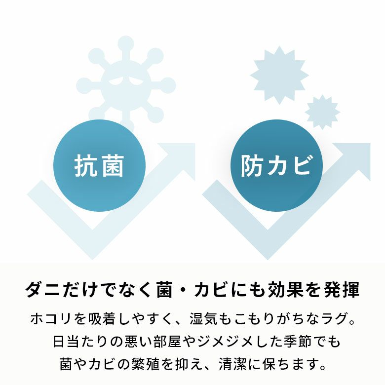 ラグの下に敷くだけで、防ダニ・防カビ・抗菌効果を発揮し、快適さをキープ