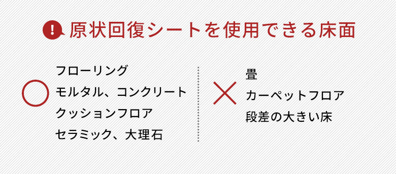 【POINT】原状回復シートの短辺にフロアタイルの長辺がくるように敷くと安定しやすくなります。