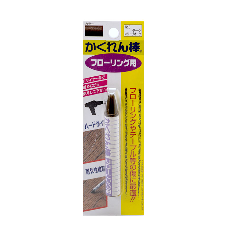 ウッドカーペットやフローリングについたキズやへこみ、天然木製の壁材のこすれ跡や、木製家具の角欠けなど、日常生活でできてしまった気になる傷をどうにかしたい...そんなときに活躍するのが、高密度ワックス系補修材「かくれん棒」。