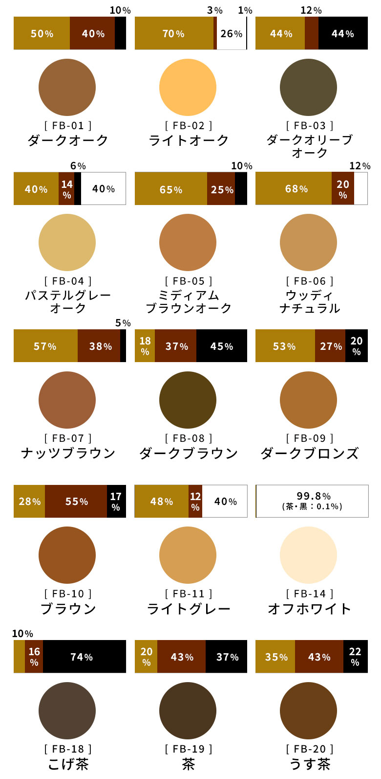 ウッドカーペット 対応色表