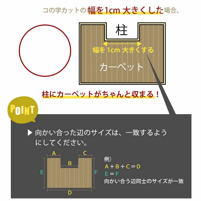 カーペットがお部屋の壁に面した辺は切り捨てですが、「L字」