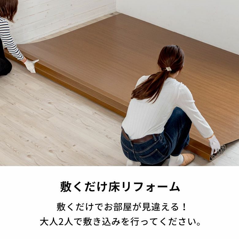 敷くだけ簡単!完了すればお部屋が 見違えるくらい変わります。 大人2人で敷き込みを行ってください。