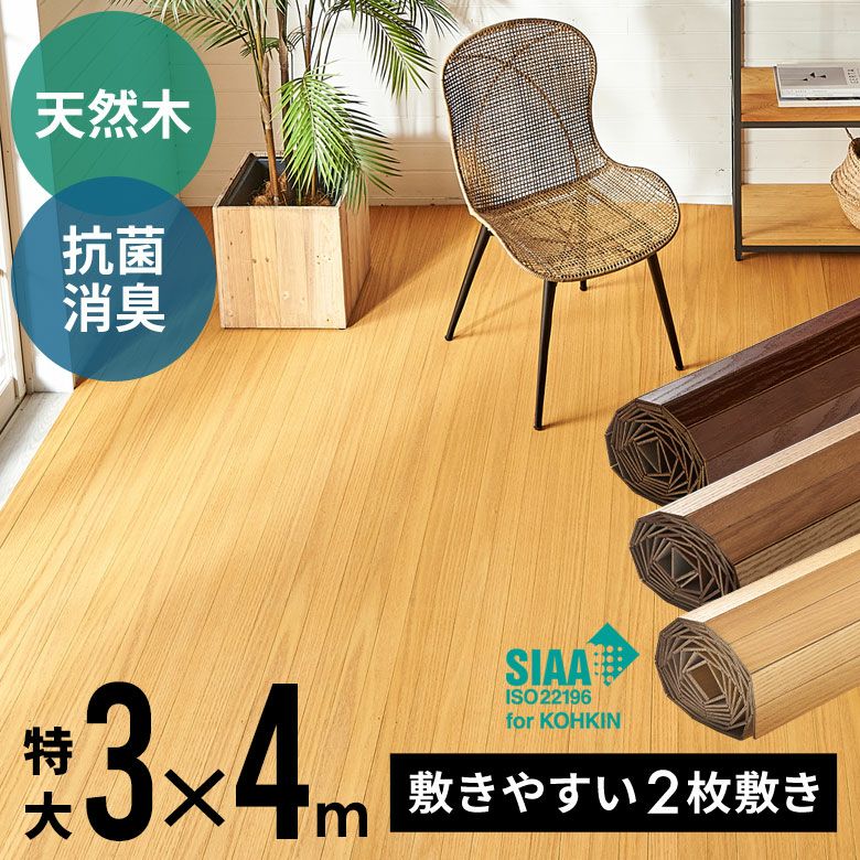 天然木の美しい木目が特徴のレッドオークの突き板 お子様やペットも安心の抗菌加工 賃貸OK 畳の上に敷くだけで和室が洋室にリフォームできるフローリングカーペット 木製カーペット DIY フローリング調カーペット 【2梱包タイプ】抗菌加工ウッドカーペットTU-90シリーズ特大サイズ約300×400cm