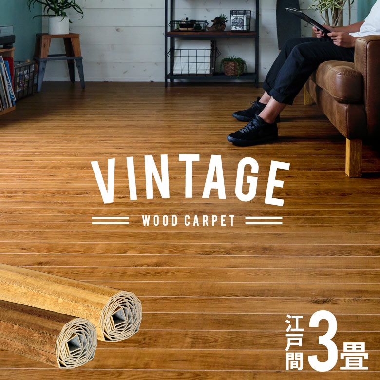 畳やじゅうたんのお部屋に敷くだけで フローリングの床に簡単チェンジできるウッドカーペット。 お手軽なうえ、何といってもその魅力は 施工フローリングよりもはるかにリーズナブルなお値段。 また、木目の凹凸を再現した特殊エンボス加工は 見た目も手触りも、本物のフローリングそっくりの仕上がり。 さらにこちらのシリーズは、細やかな色使いで表現した ヴィンテージ風カラーのシリーズ。トレンドのインテリアとの相性もばっちり。 裏面には不織布を貼っているので、下の畳や床をキズつける心配もありません。 プチリフォームや賃貸、店舗用にもおすすめです。 種類いろいろ!ウッドカーペット一覧へ>