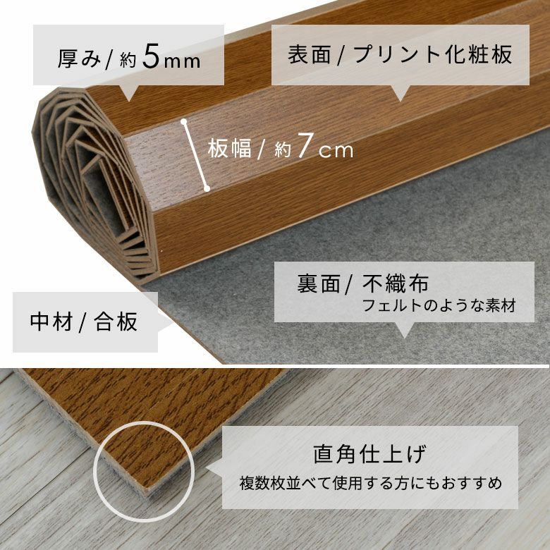 素材 <表面>プリント化粧板 <中材>合板 <裏面>不織布(フエルトのような素材)