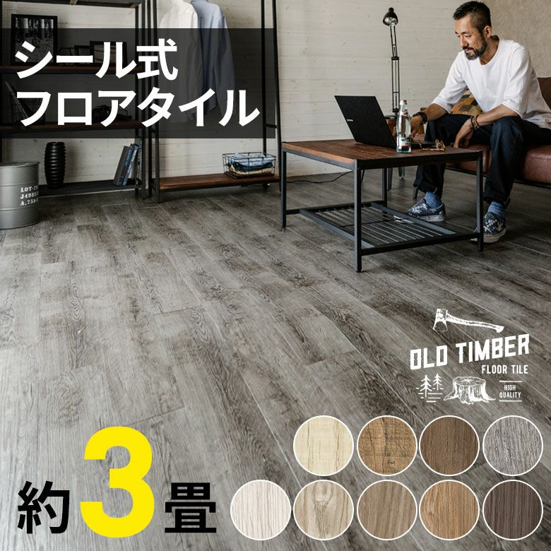 ▲貼るだけ、カンタン。木目がリアルなシールニュアンスカラーの式フロアタイル