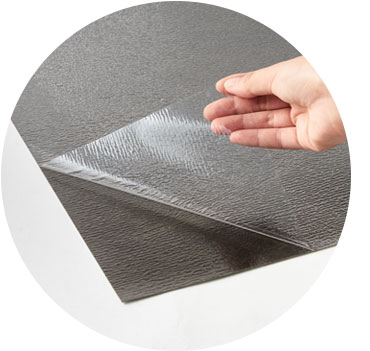 裏面は粘着性があり、シールの ように床にペタッと貼るだけ。 DIY初心者の方も気軽に扱えます。 ※原状回復はできません。