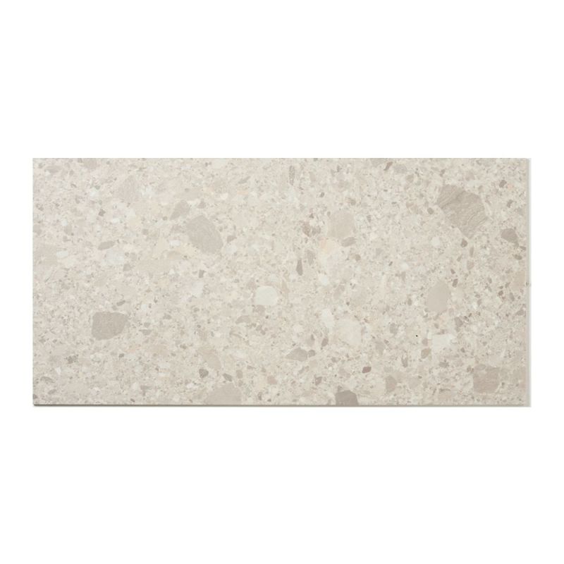 ライトグレーのベースに、白やベージュの石材も含まれた温かみのある素材感が特徴。