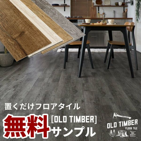 賃貸でも使える、置くだけフロアタイル。古材を再現したオールドティンバーシリーズ。 リアルな木目のエンボス加工で、まるで天然木のような仕上がり。ヴィンテージデザイン。