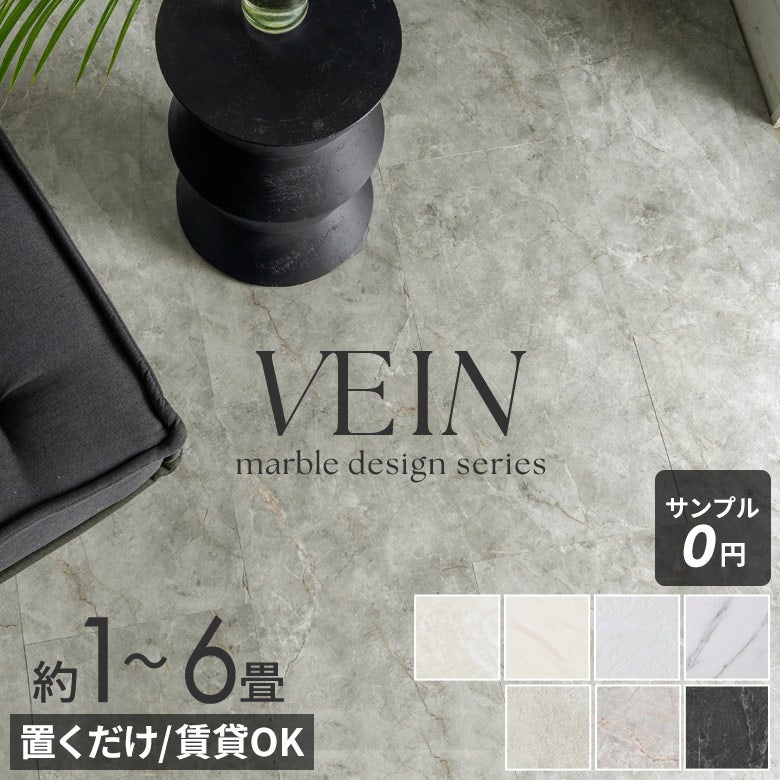 細やかなエンボス加工とリアルなプリントにより、まるで本物の天然石のような上質な質感を再現した「VEIN(ベイン)」シリーズ。 大理石やストーン特有の奥行きある模様や陰影まで感じられる、高級感あふれるテクスチャーが空間をワンランク上へと導きます。 ホワイト系からグレイッシュ、ダークトーンまで幅広い大理石・ストーンデザインをラインナップ。ヴィラリゾート風や海外インテリア、ホテルライクなど、洗練された空間コーディネートが自在に楽しめます。 表面は、キズや汚れに強く、撥水加工付きでお手入れも簡単。水や汚れもサッとひと拭きで、いつでも美しさをキープ。 裏面の滑り止めが床にピタッと吸着し、並べて置くだけの簡単施工。ノコギリや接着剤などの道具も不要で、DIYが初めての方でも安心です。
