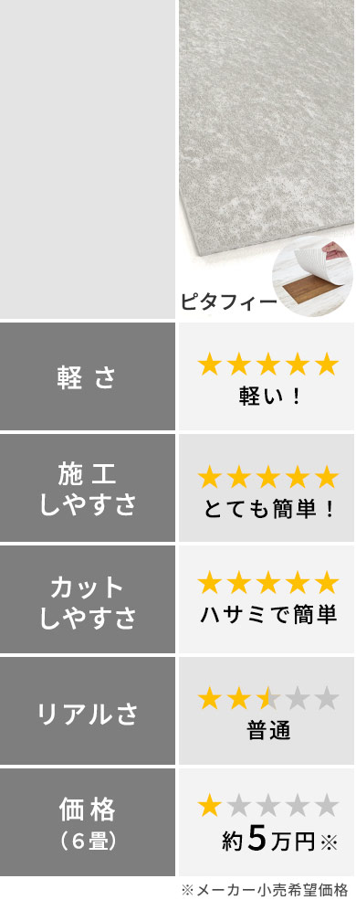 また、ペットの爪による細かい傷が目立ちにくく安心です。