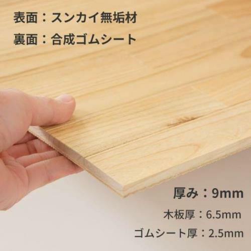 裏面のゴムシート以外は、1枚の木材だけで出来ているので、合板のように表面が剥がれてくる心配がありません。