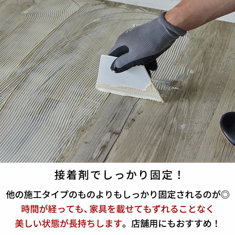 接着剤でしっかり固定!ずれることなく綺麗な状態が長持ちする接着剤タイプのフロアタイル。