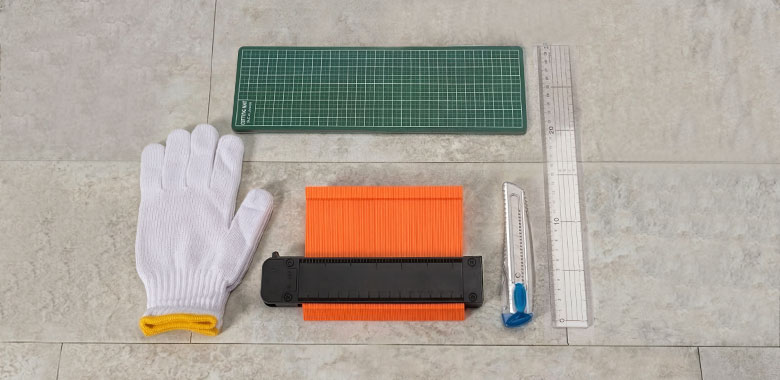 初めてのフロアタイル施工に必要な道具をまとめたコンプリートセット。フロアタイルと一緒にご購入いただけば、届いたその日からすぐに施工を開始できます。 カッティングマット付きなので、カット作業時も床やテーブルを傷つけにくく、賃貸住宅や室内DIYにもおすすめ。柱の出っ張りやドア枠の凹凸などの形を写し取れる型取りゲージも付属しています。 実際の施工でよく使う工具だけを厳選した、無駄を省いたコスパ重視のセット。初期費用を抑えてフロアタイル施工を始めたい方に最適です。