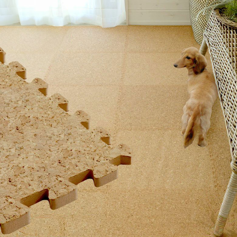 当店のコルクマットは裏地にピーチサンダルなどにも使われるクッション性・ 弾力性のあるEVA(エチレンビニールアセテート)を使用。お子様やお年寄り の方が転んでもクッションが衝撃を和らげてくれます。 また、ペットの滑りを防止し足腰への負担を軽減。愛犬が滑ることによって 引き起こされるケガが減少。コルクは家族みんなの安全を考えています。 |