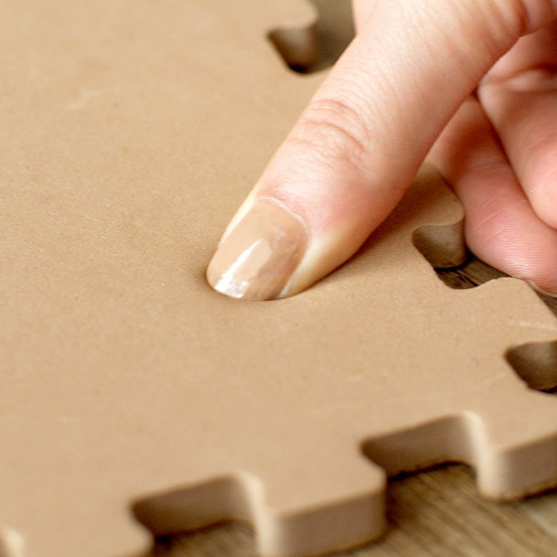 つなげていくだけの設置。コルクマットはやわらかく、カッターナイフで簡単にカットできるので、