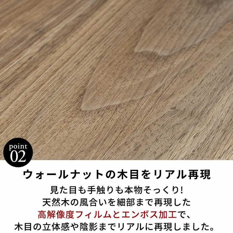・表面には木目の凹凸を再現したエンボス加工が施されており、天然木のような仕上がり。