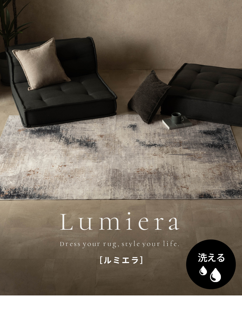 ![]() ラグマット お部屋のアクセントになるラグは、デザイン性にもこだわりたいもの。 ラグをチェンジして、お手軽に模様替えを楽しんで。