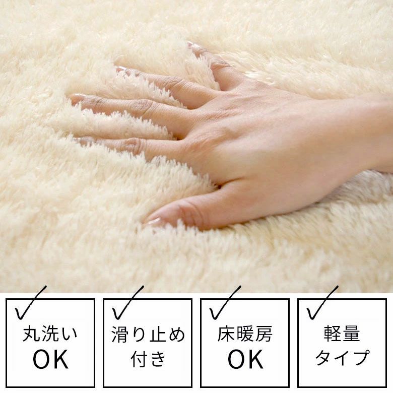 洗濯機で丸洗い可能なため、掃除機では取れない汚れも簡単に落とせ、速乾性に優れた素材でお手入れもラクラク。床暖房にも対応しており、季節を問わず快適に使用でき、特にお子様やペットがいるご家庭に最適です。