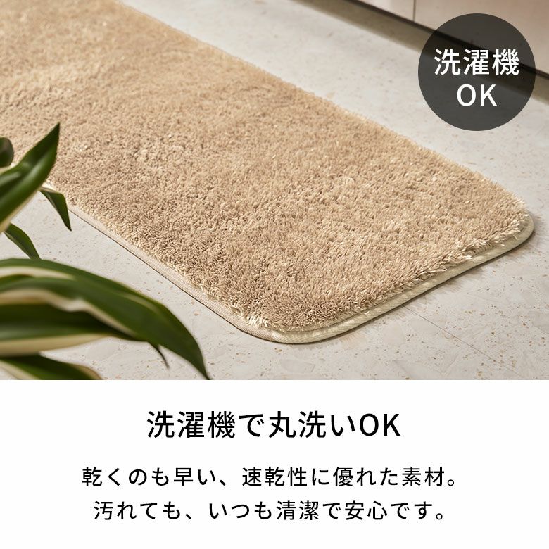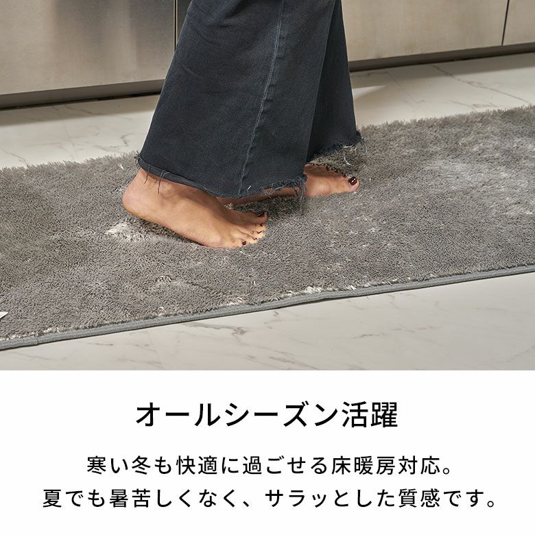 45×180cmのサイズは、玄関や廊下、ベッドサイドなど、細長いスペースにもぴったりです。マイクロファイバー製なので、夏はサラッと快適に、冬は暖かく使用できオールシーズン足元を快適にします。