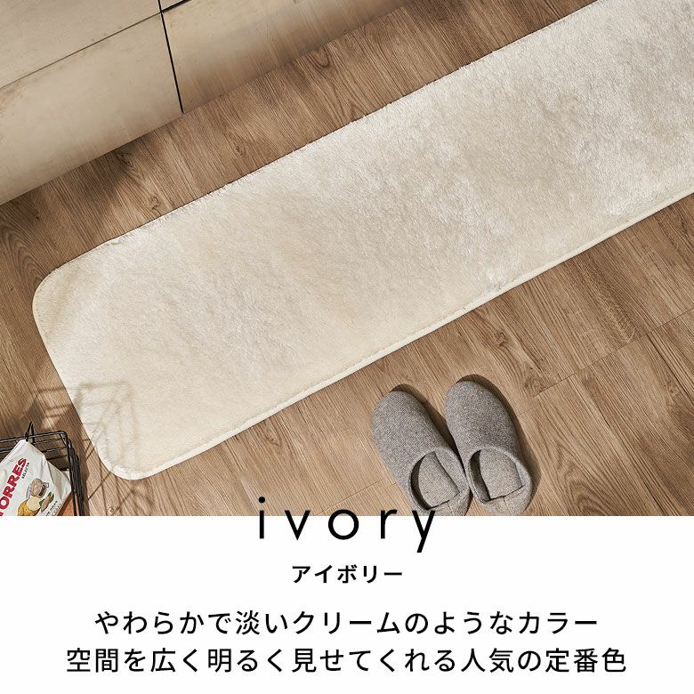 特徴:なめらかな肌触りを追求したフラッフィシリーズにキッチンマットサイズが新登場。丸洗いできて清潔さを保てます。