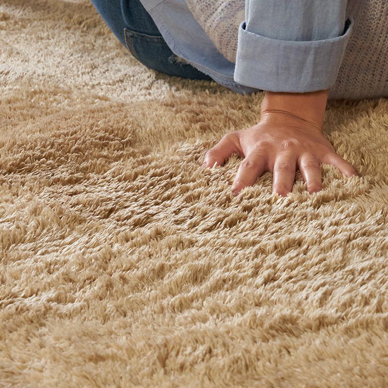 ▲丸洗いOK、埋もれそうなふかふかボリューム、シャギーラグ