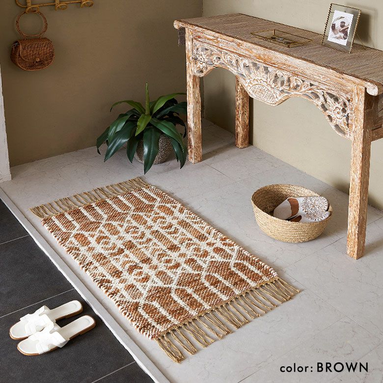 他の画像を見る ラグマット 天然素材 ドアマット モロッカン モロッコ 柄もの 柄あり 幾何柄 刺繍 風 玄関 マット ジュートラグ 麻 綿 コットン シェニール フリンジ付き インド製 約 W 50~60 × D 80~90 × H 1 cm ラグ ラグマット 室内 屋内 50×80 60×90 オールシーズン 春 夏 秋 冬 リバーシブル 2way おしゃれ 北欧 韓国インテリア BOHO ボーホー [34516] お気に入りに登録する 販売価格 ¥ 3,280 税込