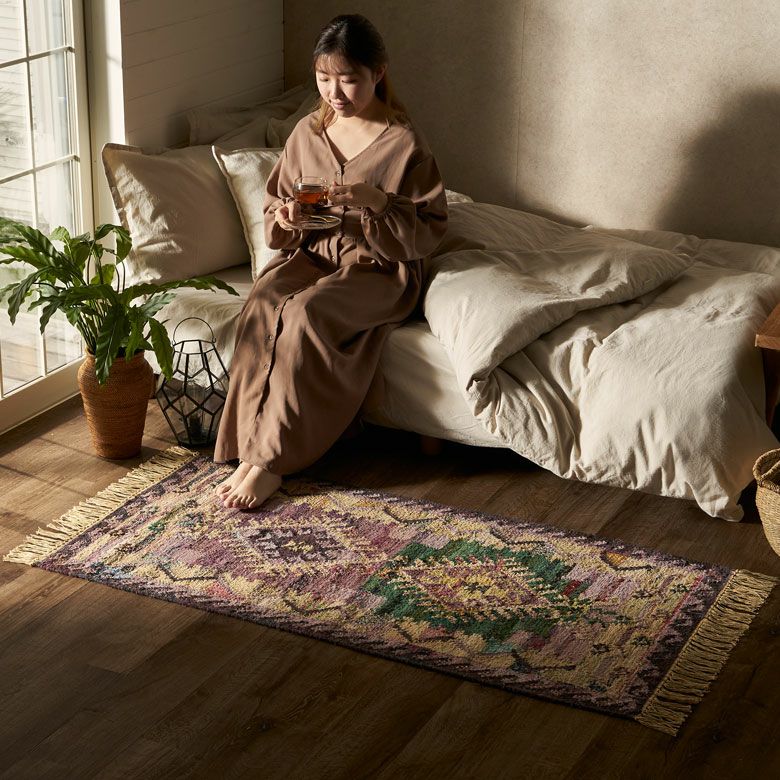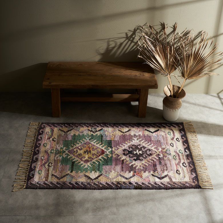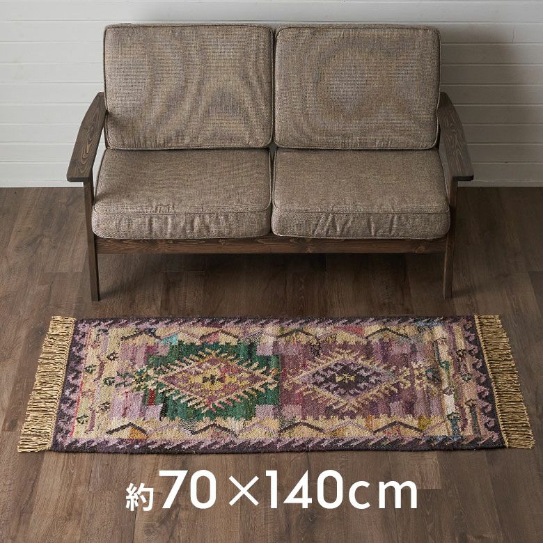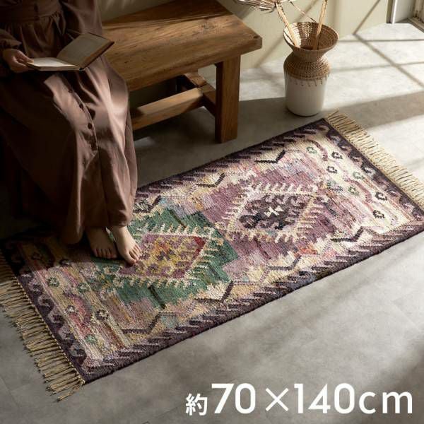 インドの伝統的デザインをアクセントに パンジャ織りラグ[ 約70×140cm ]