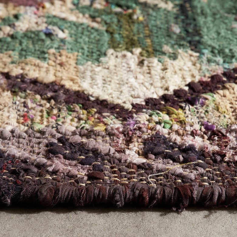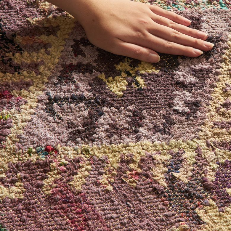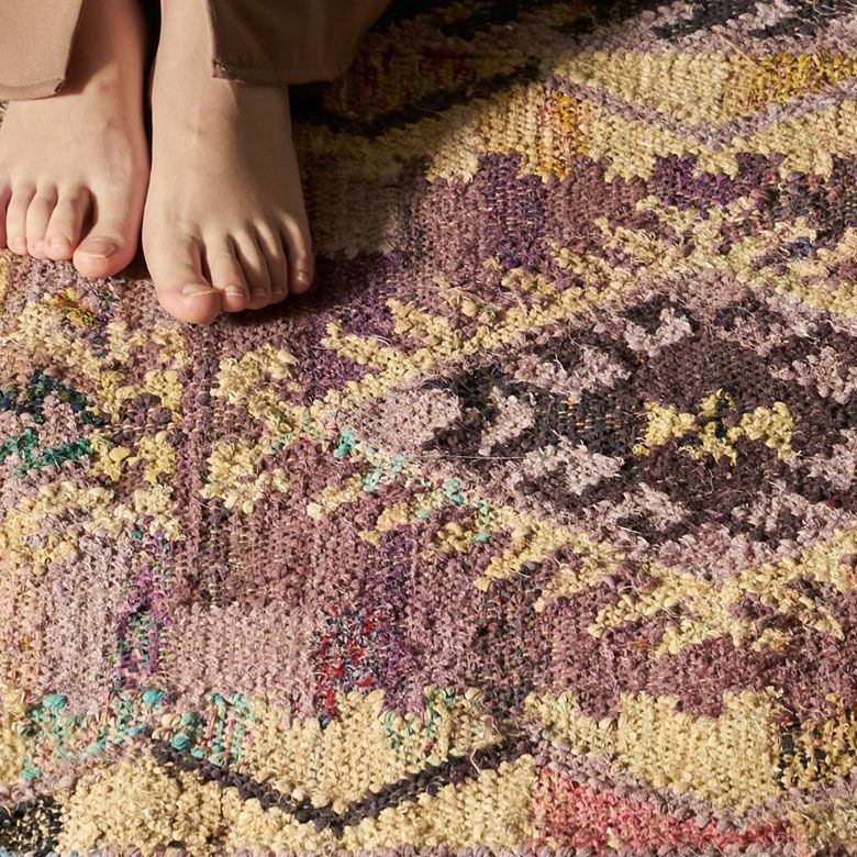 リサイクル素材を使用している為、まったく同じ色合いのものは存在しません。 表情が1枚1枚異なる世界にたった1枚のラグ。 特別感のある逸品です。