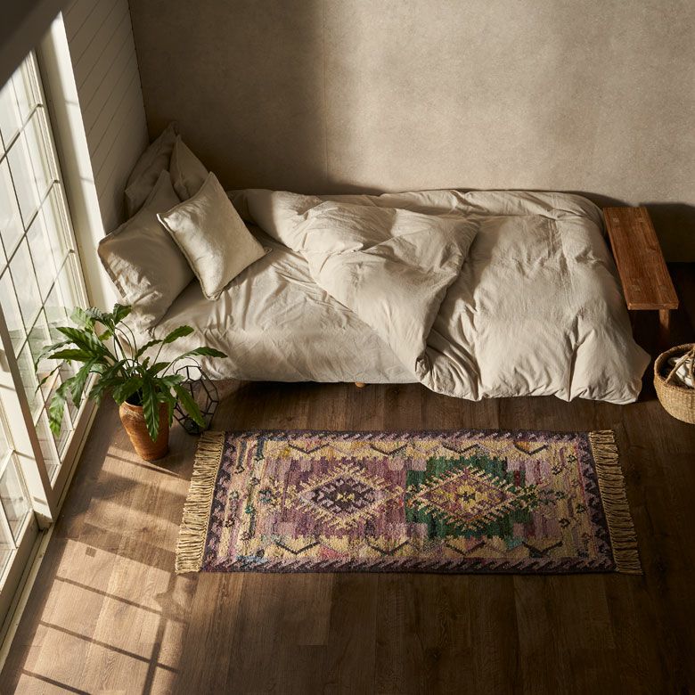 インドコットンは吸湿性に優れているので、オールシーズン快適にお使い頂けます。 固く目が詰まっていてさらっとした踏み心地も魅力の1つ。