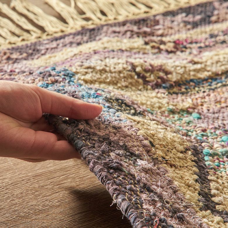 コンパクトで使いやすくサイズ感は、お部屋のちょっとしたアクセントにぴったり。 ひとり暮らしのお部屋などにもおすすめ。 ハンドメイドラグは柄が均一ではなかったり、ムラが生じていることがありますが 1つの「味」として、手織りでしか表現できない表情やぬくもりをお楽しみください。