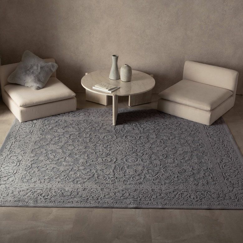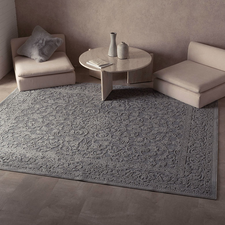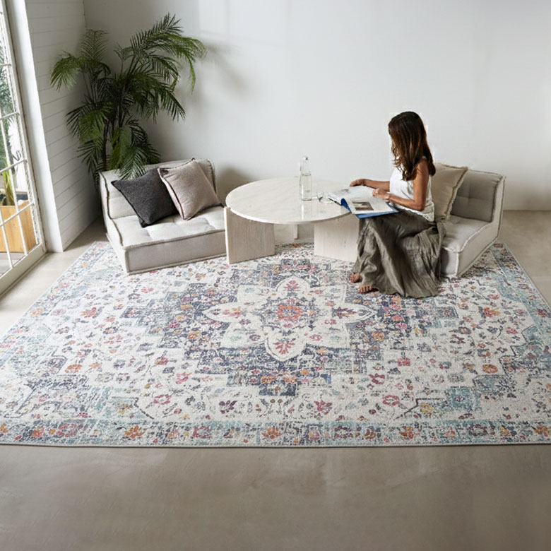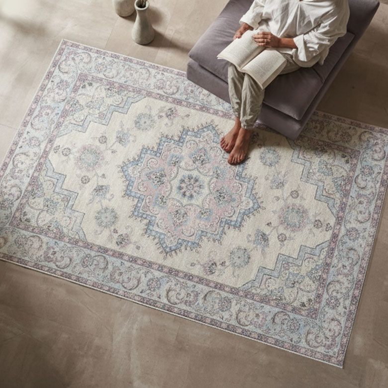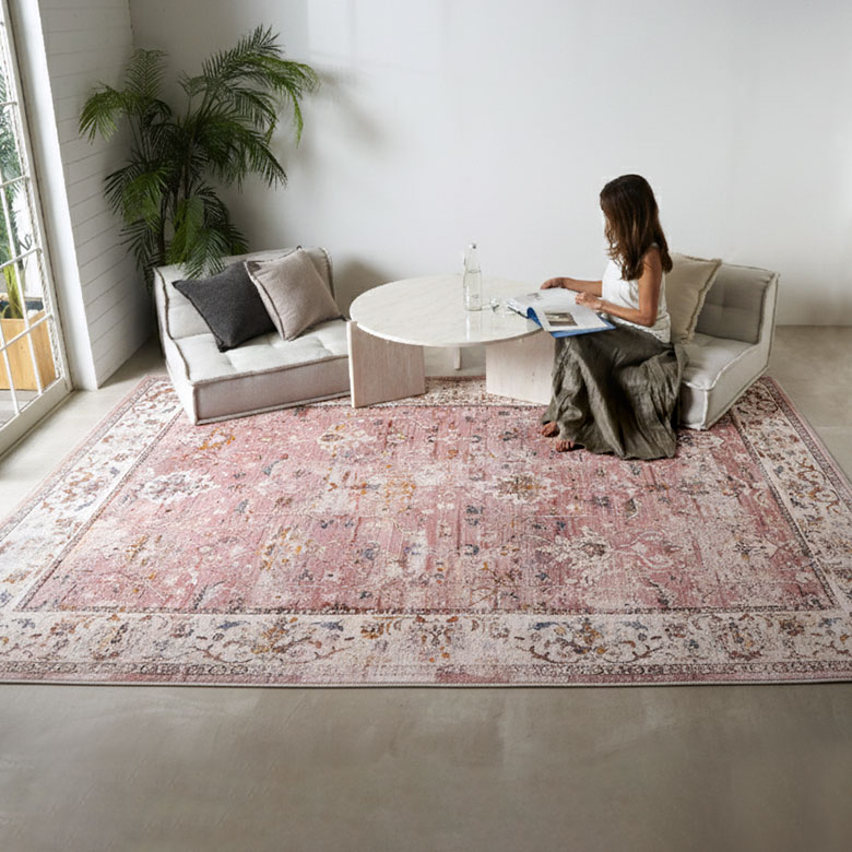 華やかに舞うフラワー柄や落ち着きのあるスモーキーカラーのオリエンタルラグは