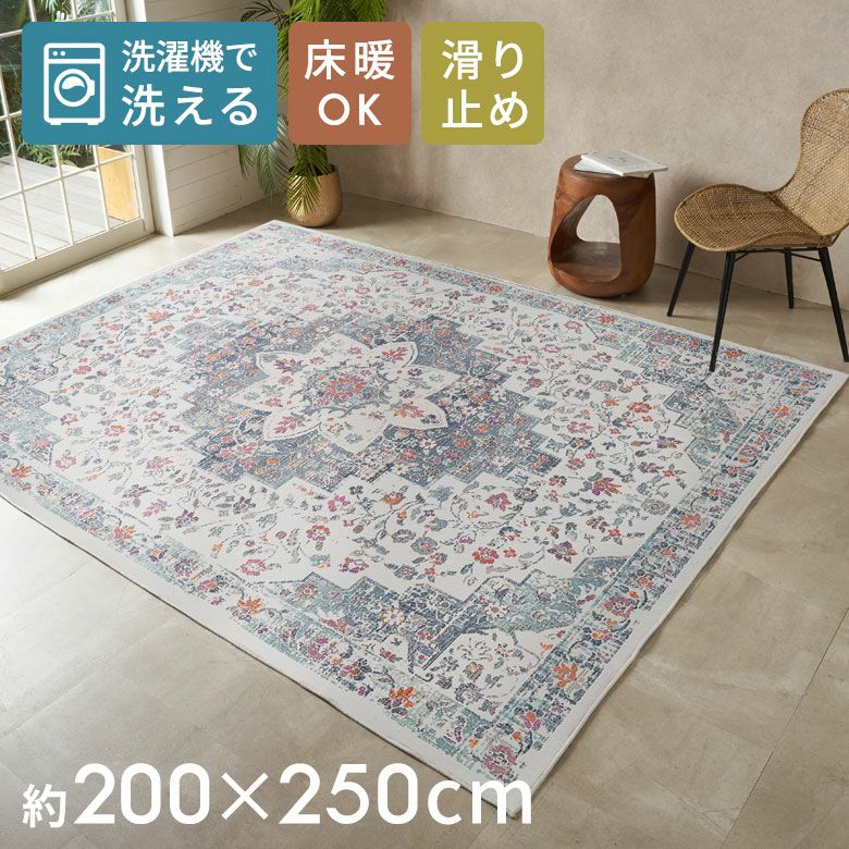 ヴィンテージラグの風合いを、“手軽に・清潔に”楽しめるラグマット。繊細な模様と深みのある色合いを転写プリントでリアルに再現し、本物のような重厚感と高級感を実現しました。