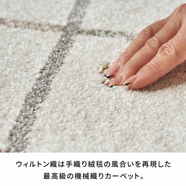 「ウィルトン織」は、手織り絨毯の風合いを再現した、最高級の機械織りカーペット。