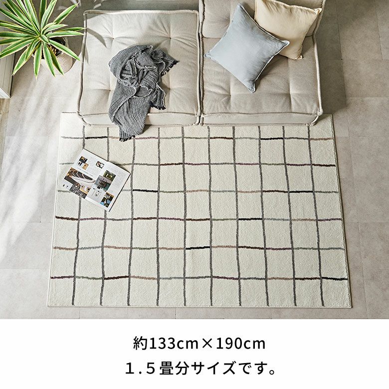 ・リビングはもちろん、ダイニングテーブル下など幅広くお使いいただけるサイズ(約133×190cm)