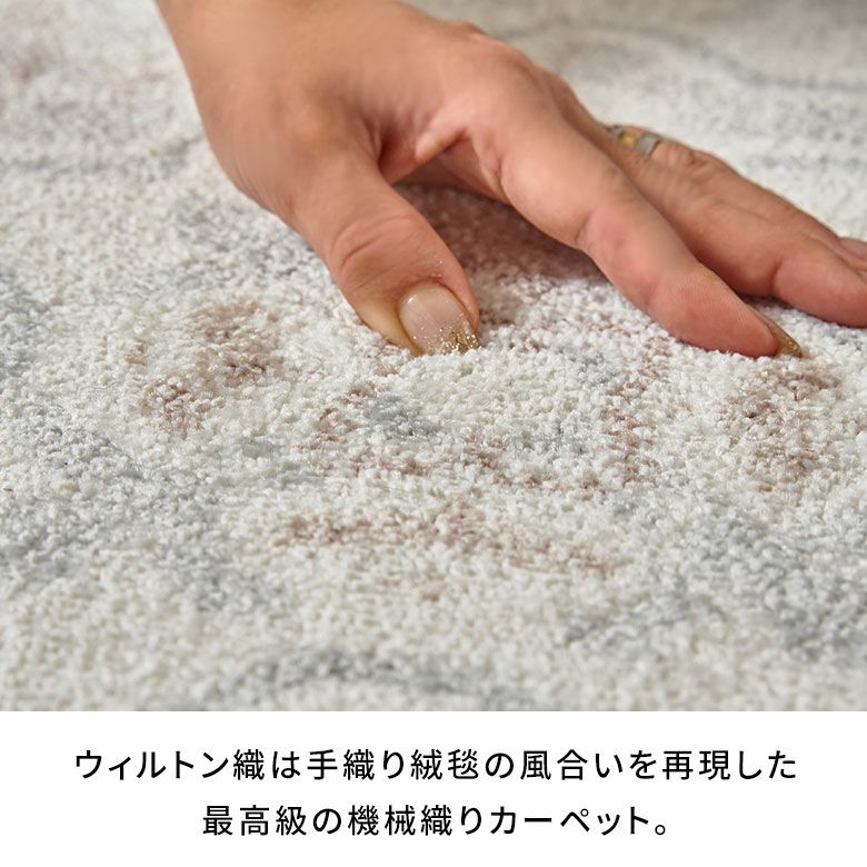「ウィルトン織」は、手織り絨毯の風合いを再現した、最高級の機械織りカーペット。