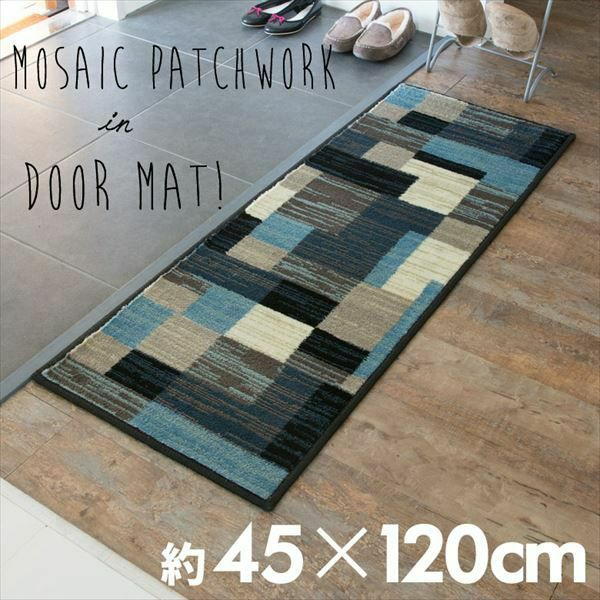 キッチンマット 玄関マット 約45×120cm モザイク柄 パッチワーク柄 ラグマット