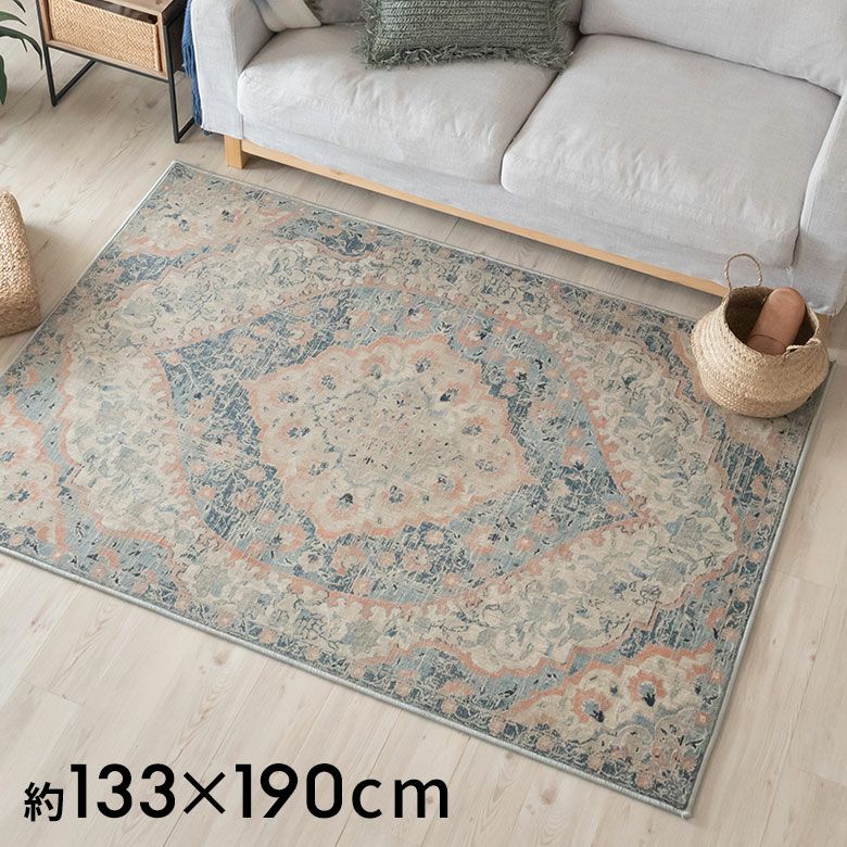 かすれたようなアンティーク感を表現した、ペルシャ絨毯風のメダリオンデザインは