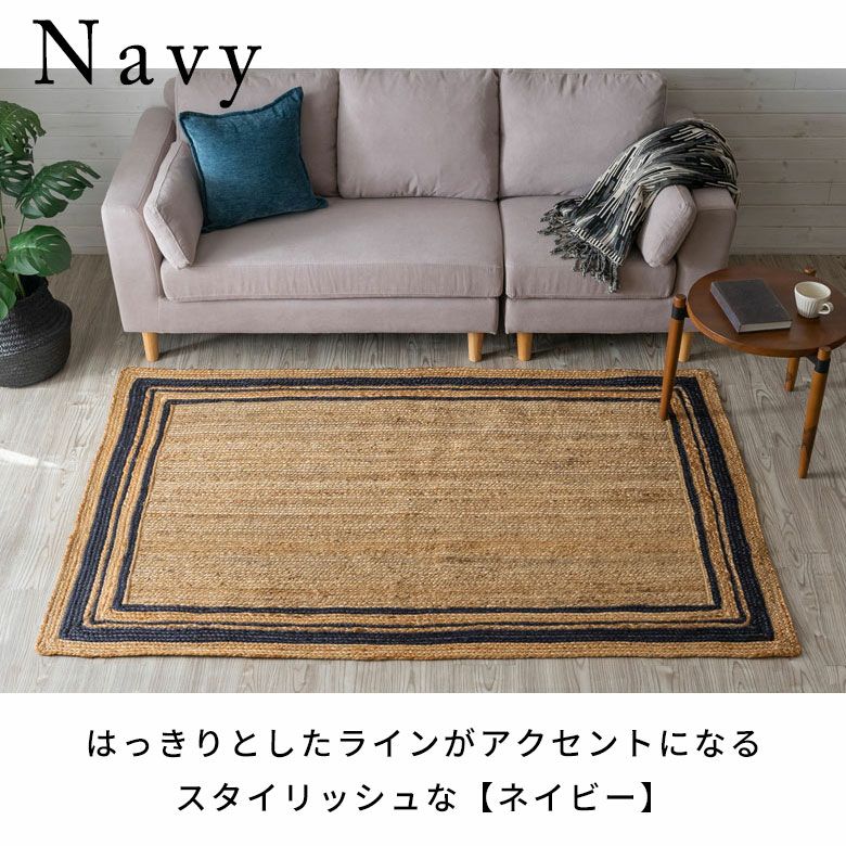 絨毯 じゅうたん 天然素材 ラグカーペット スクエア ハンドメイド ベッドサイド 寝室 リビング ダイニング 海外インテリア 韓国インテリア 新生活 模様替え ギフト プレゼント ラグ カーペット ジュートラグ 幅190cm 130×190 長方形 約 W 190cm D 130cm H 1cm ジュート マット インド製 麻 ネイビー ホワイト ライン ラグマット 室内 屋内 オールシーズン 春 夏 秋 冬 ナチュラル ボーホー BOHO おしゃれ 北欧 リゾート インテリア 西海岸 [34534]