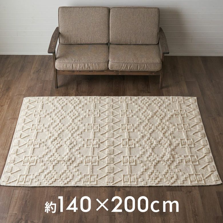 ポコポコとした編み目で空間にアクセントを コットンウールラグ[ 約140×200cm ]