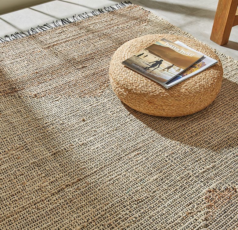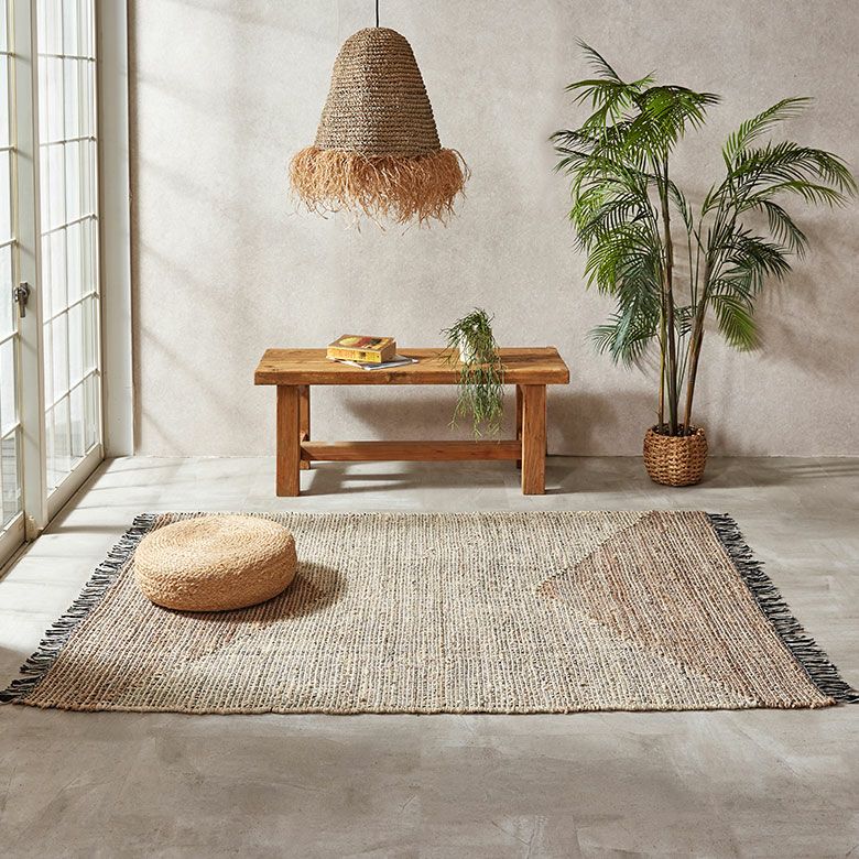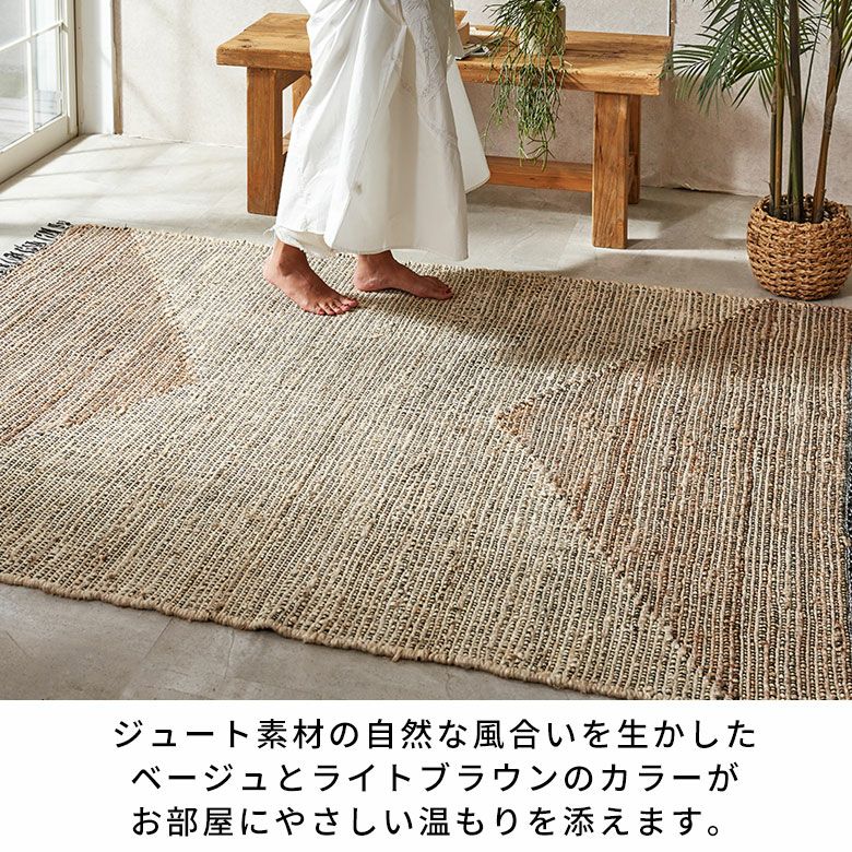 天然素材のジュートを使用したハンドメイドのラグは、自然素材の家具やウッド系のインテリアと相性が抜群。