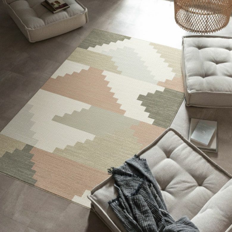 幾何学柄が民族調の雰囲気を引き立てるビスコースモケットラグは、ラタンやマクラメ、観葉植物と合わせてリラックス感のあるボヘミアン空間に調和します。