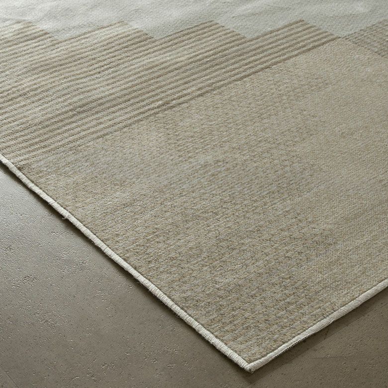 人絹(アーティフィシャルシルク)とも呼ばれる光沢のある上質な見た目と柔らかなタッチ感に加え、光の角度で表情を変えるパイルは精巧なデザイン表現を可能にし、ニュアンスカラーも美しく再現。短い繊維を撚り合わせた紡績糸で自然なふんわり感があり、踏み心地も快適です。使い始めは遊び毛が出ますが、徐々に落ち着きます。さらに、分解が早く環境負荷が少ない点も魅力で、上質さと環境配慮を両立した高級サステナブルラグです。
