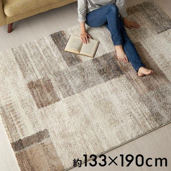 アースカラーで旬のお部屋に モザイク柄ブラウン [ 約133×190cm ]