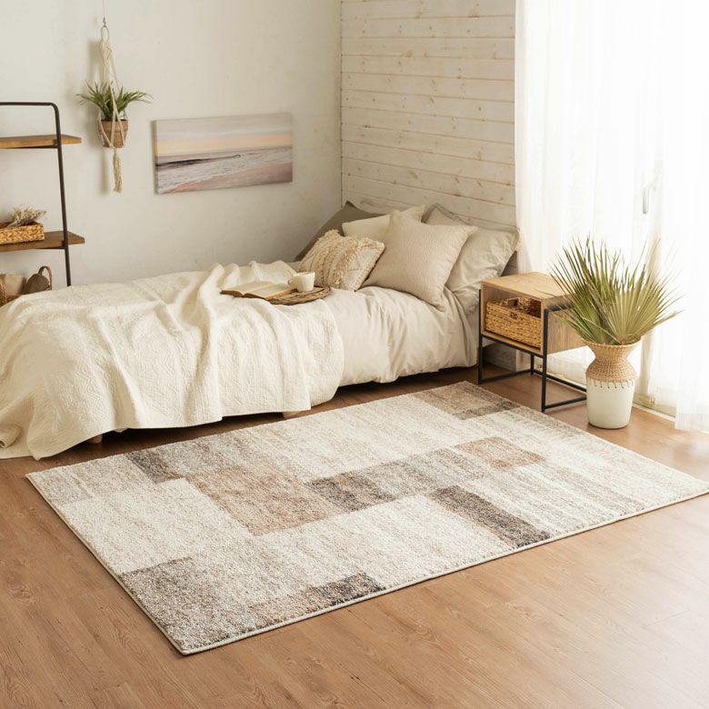 お部屋に取り入れやすいサイズ感。 一人暮らしのワンルームや、リビングや寝室、ダイニングにも敷きやすい万能サイズです。