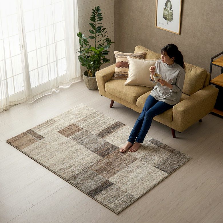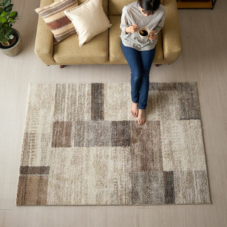 ブラウンを基調としたモザイク柄ラグ。 アースカラーを組み合わせた、飽きの来ないカラーリングと デザインで長く愛用できるベーシックさが魅力。 お部屋をナチュラルモダンな印象に仕上げてくれます。 ふんわりと長めのパイルで心地良さも抜群。 柔らかくなめらかな質感が気持ち良い ずっと触れていたくなるような高級感のあるさわり心地です。 密度のぎゅっと詰まった柔らかい毛足で 季節を問わずオールシーズンお使いいただけます。 無地ラグでは出せない、さりげないアクセントにぴったりのラグです。 デザインラグ一覧へ >