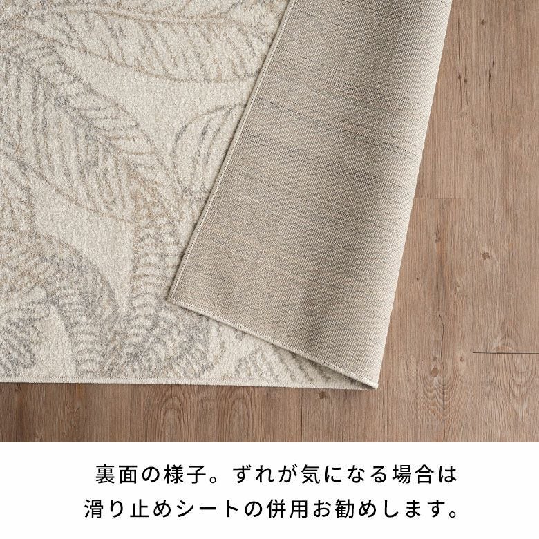 裏面の様子。 ずれが気になる場合は、滑り止めシートの併用をお勧めいたします。 下敷きラグで厚みを足すのもおすすめ!