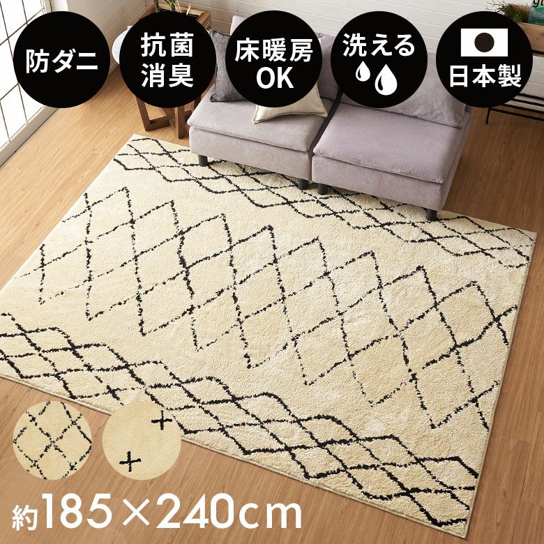 185×240 春 夏 秋 冬 リビング ダイニング 寝室 ベッドルーム センターラグ 洗濯 可能 丸洗い メッシュ ライン ベース シンプル エスニック かわいい アナログ デザイン 柄 日本製 ラグ ラグマット 約 185×240cm 国産 ベニオワレン風 クロス 長方形 防ダニ 抗菌 防臭 洗える カーペット 絨毯 じゅうたん ホットカーペット 床暖房 対応 可 敷物 マット オールシーズン ウォッシャブル おしゃれ 北欧 リゾート 雑貨 インテリア 西海岸風 [84353]