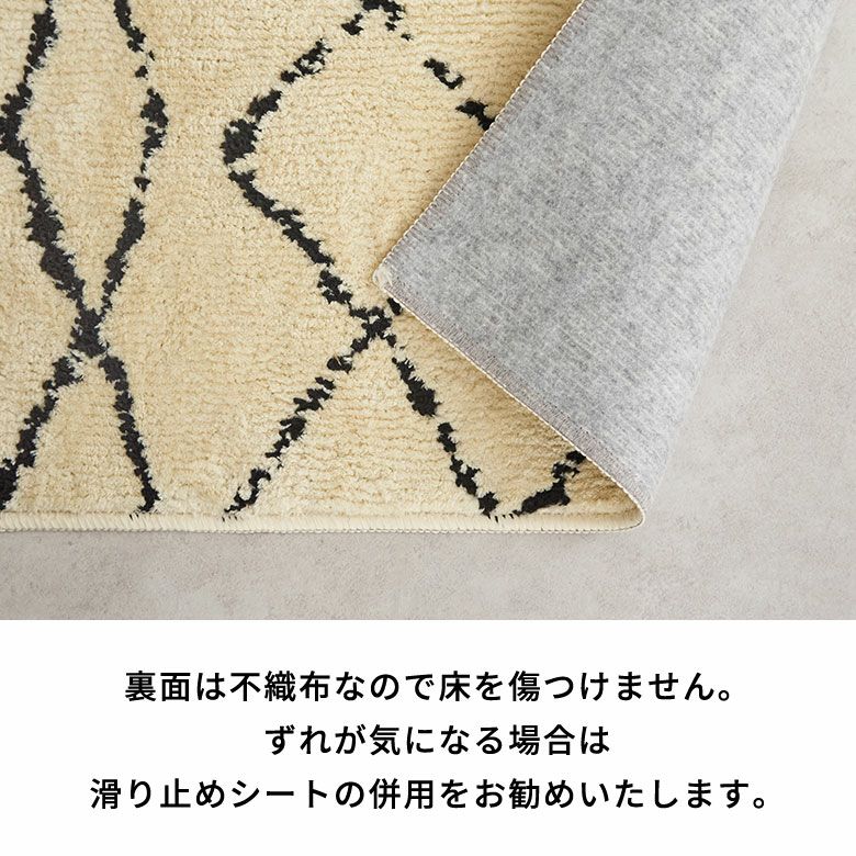 ラグの下に敷くだけで、滑り止め&ふんわりになる「下敷きラグ」はこちら >